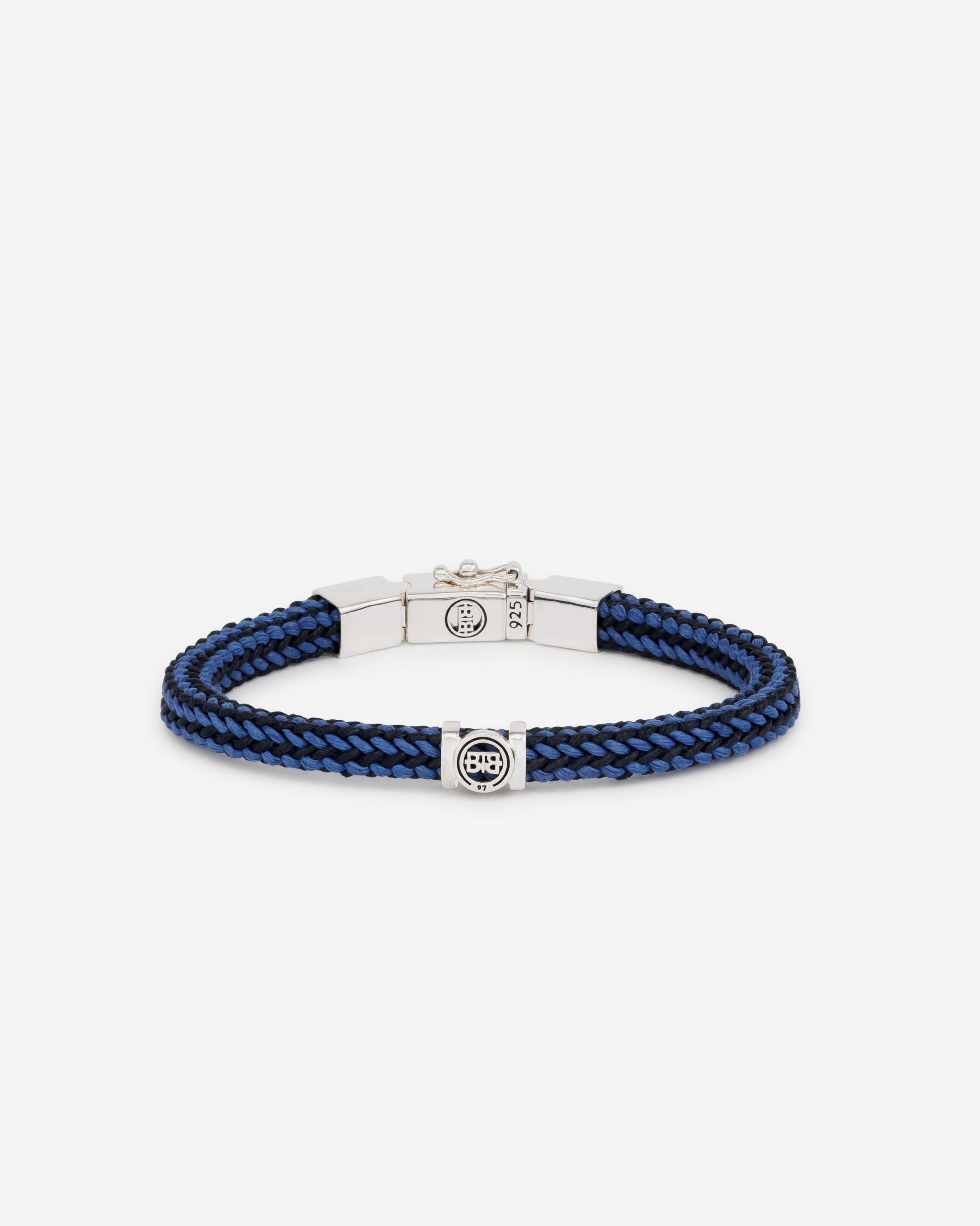 De Denise Koord Mix Blauw Armband is een stijlvol geweven koord met ons iconische en tijdloze sterling zilveren slot. Ontworpen in Amsterdam en met zorg handgemaakt in Zuidoost-Azië, voegt deze blauw met zwarte armband een stoere touch toe aan elke outfit. Combineer het met andere zilveren sieraden of draag het naast je horloge voor een complete look. Welk bijzonder verhaal vertel jij met deze armband? Let op: het is belangrijk om contact met water en langdurige blootstelling aan direct zonlicht te vermijden, om de kwaliteit van het geweven koord te behouden.