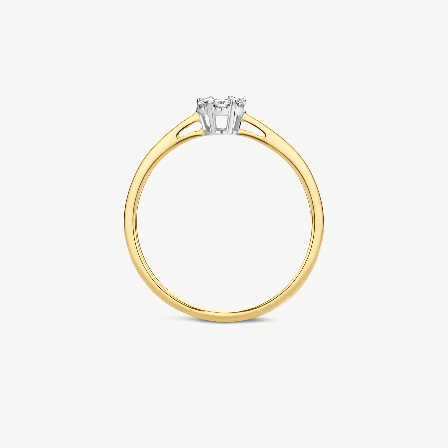 Deze elegante geel- en witgouden ring van 14k sprankelt met een briljant geslepen diamant. De band heeft een doorsnee van 1,5 mm en de diamant een karaatgewicht van 0,15. Prachtig om op zichzelf te dragen of om te combineren met één van onze andere (diamanten) aanschuifringen.