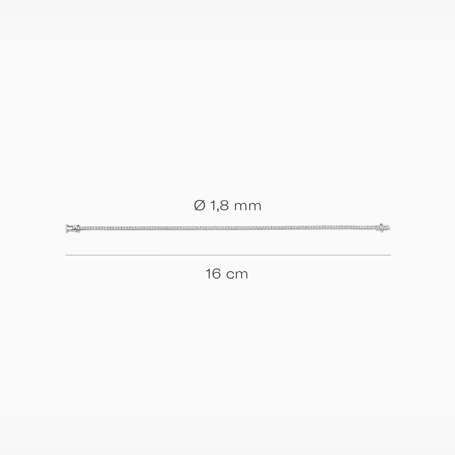Deze ultra stijlvolle 14k witgouden armband is rondom bezet met lab-diamonds in chaton-zetting. Het totaal karaatgewicht van de diamantjes is 2,6 en de lengte van de armband is 16 cm. Prachtig alleen of in combinatie met een ring en/of collier met lab-diamonds uit onze collectie.