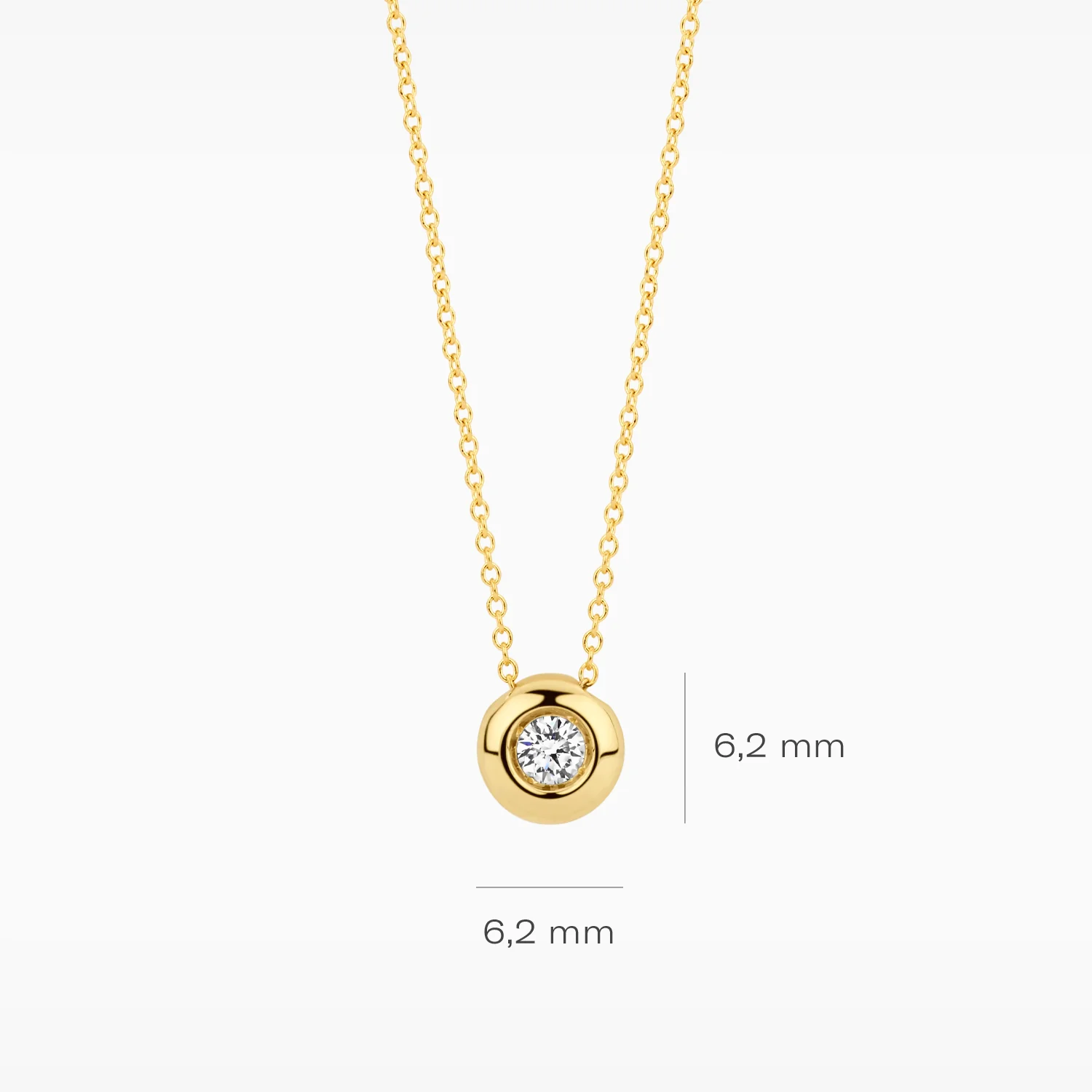 Gemaakt van 14k gecertificeerd gerecycled goud met lab grown diamant. Dit collier is uitgevoerd in glanzend gepolijst goud en is voorzien van een briljant geslepen Lab grown Diamant van 0,10 ct met een doorsnede van 6,2 mm. Deze ketting met geelgouden hanger heeft iets extra’s; de geelgouden ronde hanger is bezet met een stralende lab grown diamant. Voor een extra stralend effect is het collier stijlvol te combineren met een Lab Diamonds ring of oorbellen LG7004Y.