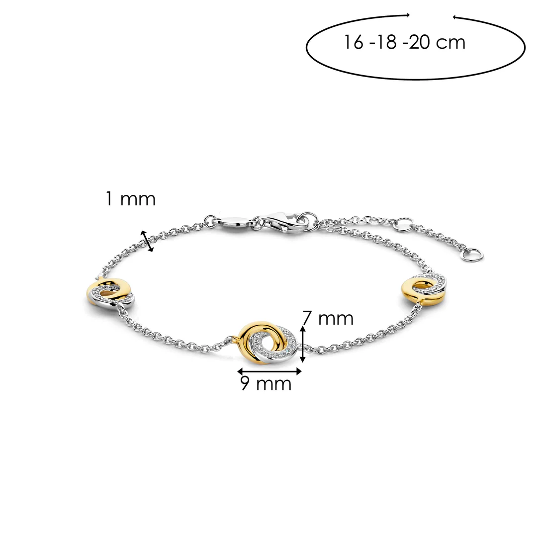 Deze vergulde TI SENTO infinity armband 2925ZY is een verfijnde uitdrukking van tijdloze schoonheid en modern raffinement. De armband heeft delicaat bewerkte infinity symbolen langs de ketting, waar een geel vergulde cirkel verbindt met een oogverblindende pavé cirkel van zirkonia. De armband is gemaakt van eersteklas 925 sterling zilver en is verguld met platinum om hem te beschermen tegen dagelijks gebruik en hem helder te houden. Ontworpen om de perfecte balans van elegantie en luxe te belichamen, combineert deze armband naadloos de warmte van goud met de oogverblindende allure van zirkonia. De verfijnde oneindigheidstekens symboliseren verbinding en grenzeloze liefde. Omarm de verfijnde charme van deze armband, waar elk ingewikkeld detail bijdraagt aan een sieraad dat moeiteloos overgaat van casual verfijning naar avondlijke elegantie. Net als al onze sieraden is deze armband nikkelvrij en hypoallergeen, zodat je niet alleen verzekerd bent van stijl, maar ook van comfort en kwaliteit.