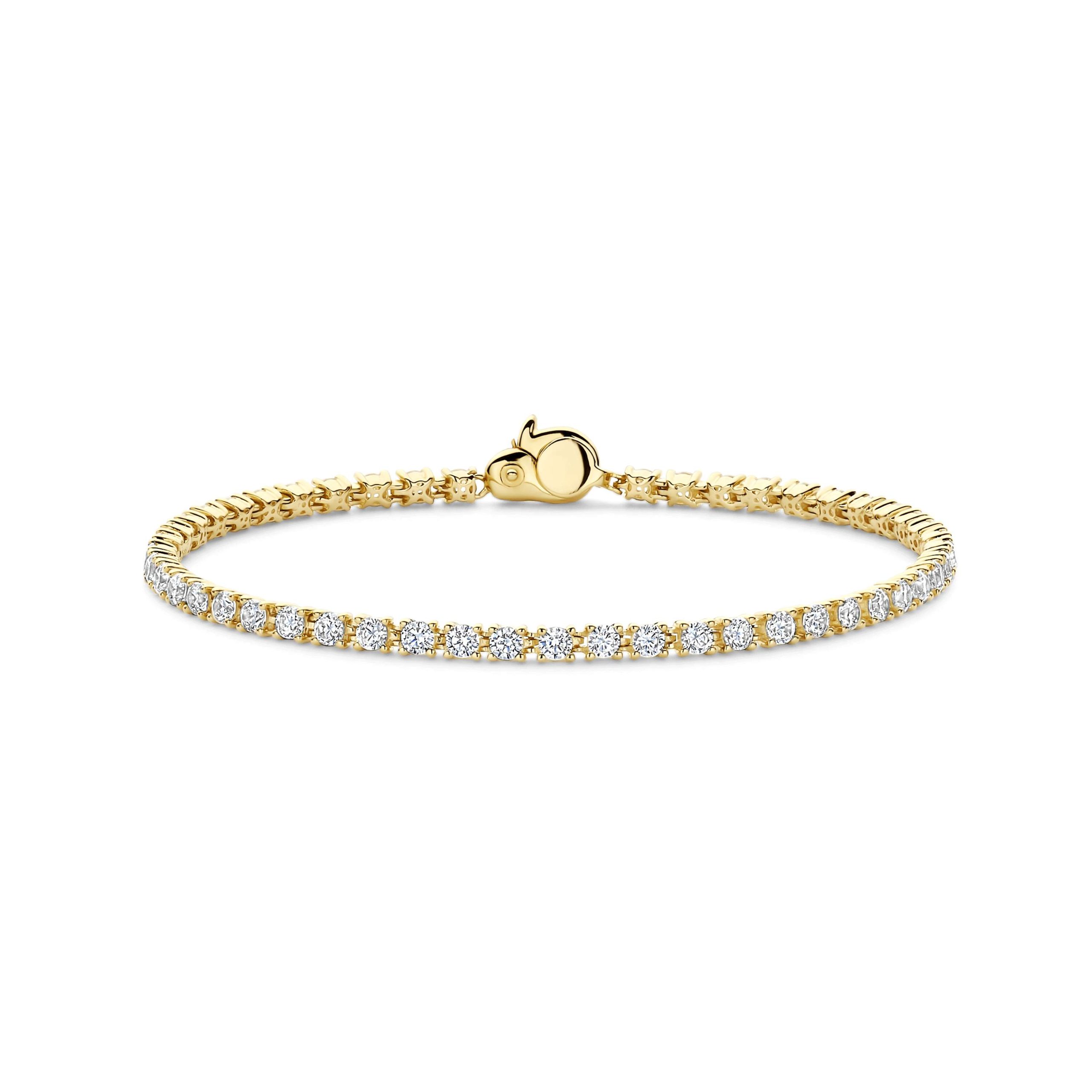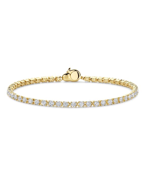 Geniet van verfijnde schittering met deze vergulde zilveren TI SENTO armband 2951ZY. Deze tennisarmband is gemaakt van 925 sterling zilver en verguld met stralend geelgoud. Hij is voorzien van een doorlopende rij met de hand gezette witte zirkonia’s in ronde zettingen, die elk het licht vangen met uitzonderlijke helderheid en vuur. De warme gouden tinten contrasteren prachtig met de ijzige schittering van de stenen en bieden een verfijnde interpretatie van een klassiek silhouet. De slanke sluiting sluit naadloos aan op het ontwerp en garandeert veiligheid zonder de vloeiende lijn van glans te verstoren. Of u hem nu alleen draagt als een elegant pronkstuk of gelaagd voor moderne glamour, deze armband tilt elk moment naar een hoger niveau, van alledaagse elegantie tot feestelijke gelegenheden. Een tijdloze essential in elke fijne sieradencollectie. Nikkelvrij en hypoallergeen voor comfort de hele dag.