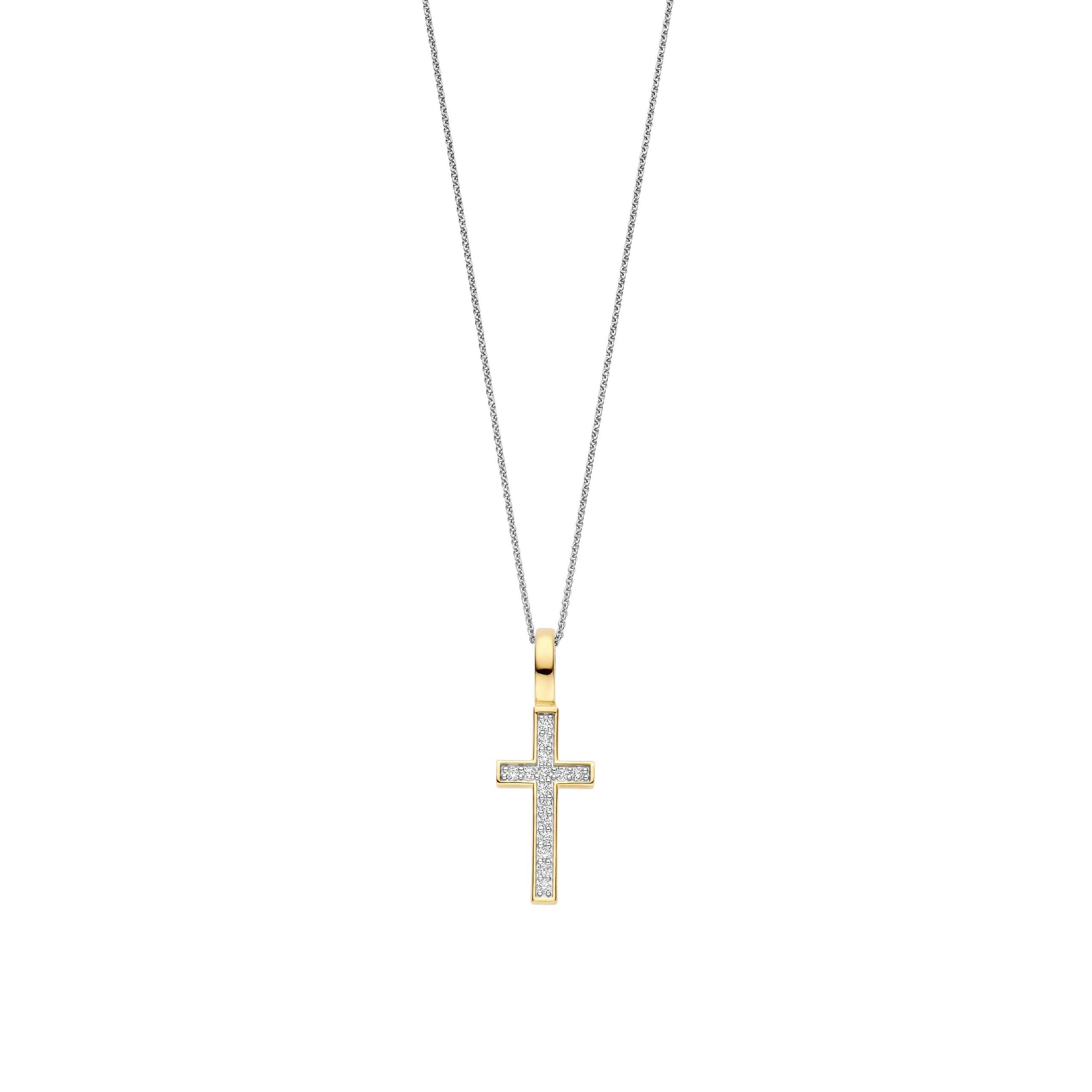 Vier blijvende schoonheid met deze TI SENTO vergulde kruis-hanger 6857ZY. Deze hanger is vervaardigd uit 925 sterling zilver en afgewerkt met een stralende goudkleurige vergulding. Het kruis-silhouet is pavé gezet met briljante zirconia en schittert met ingetogen kracht en helderheid. Het contrast tussen warm goud en lichtgevende stenen brengt tijdloze symboliek in verfijnde balans. Nikkelvrij en hypoallergeen, hij biedt zowel betekenis als blijvend draagcomfort. De hanger wordt geleverd met een verfijnd zilver collier.